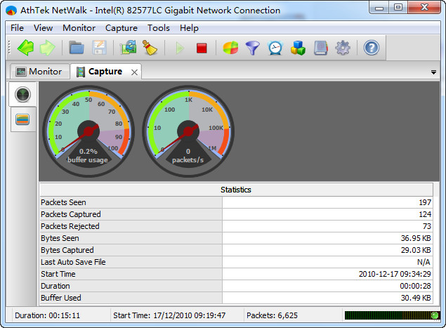 AthTek NetWalk is a comprehensive network monitoring tool which can be used as intrusion detection system (NIDS) for business networking. It captures packets and achieves high performance in packet sniffing.